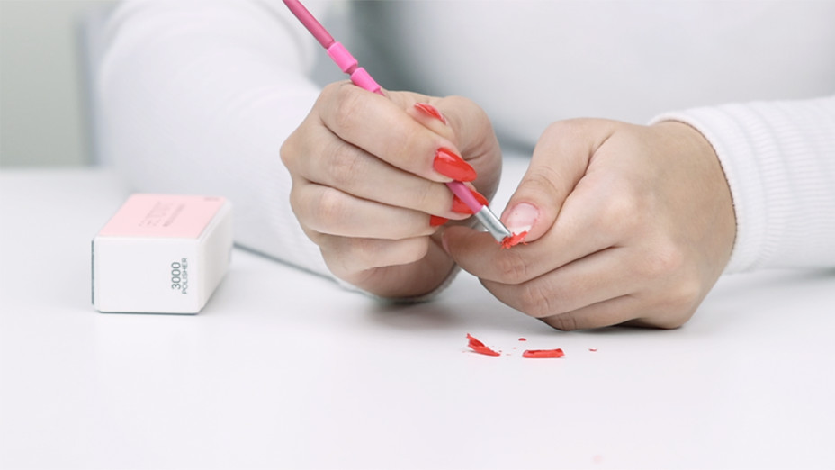 Remove flaking polish residue with your GelMoment Cuticle Pusher.